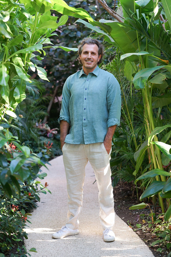 Cool linen shirts that elevate your look! Perfect for summer, worn crisp or relaxed. Made from 100% Italian linen with detailed color combinations of thread and fabric, responsibly crafted by artisans in Mexico.