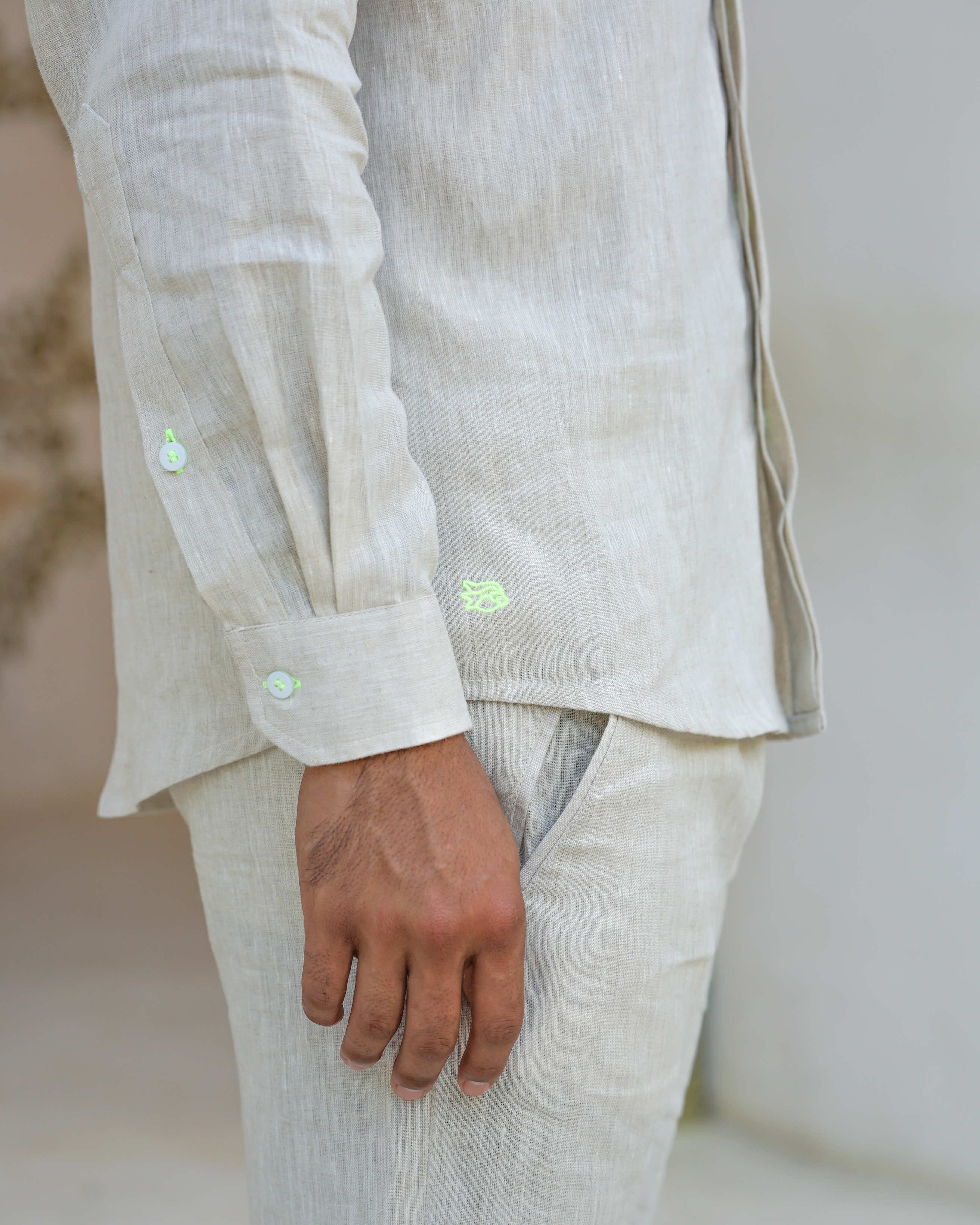 MENORCA Linen Shirt - Sand/Neon Yellow